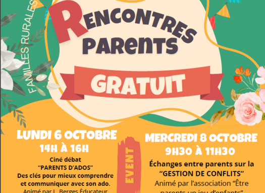 Par admin cite-francois-mitterrand, publié le vendredi 3 octobre 2025 10:03 - Mis à jour le vendredi 3 octobre 2025 10:04Ciné débat "Parents d'ados" et Echanges entre parents sur la "Gestion de conflits" - Lundi 6 octobre 14h-16h et Mercredi 8 octobre 9h30 - 11h30 -