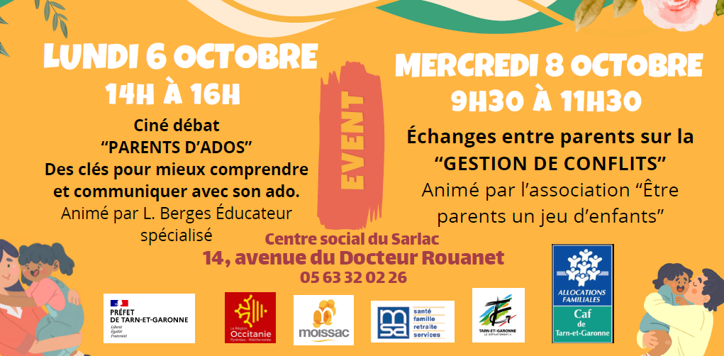 Ciné débat "Parents d'ados" et Echanges entre parents sur la "Gestion de conflits" - Lundi 6 octobre 14h-16h et Mercredi 8 octobre 9h30 - 11h30