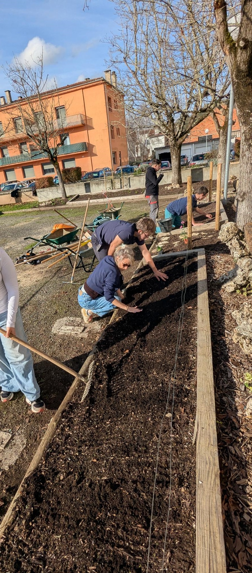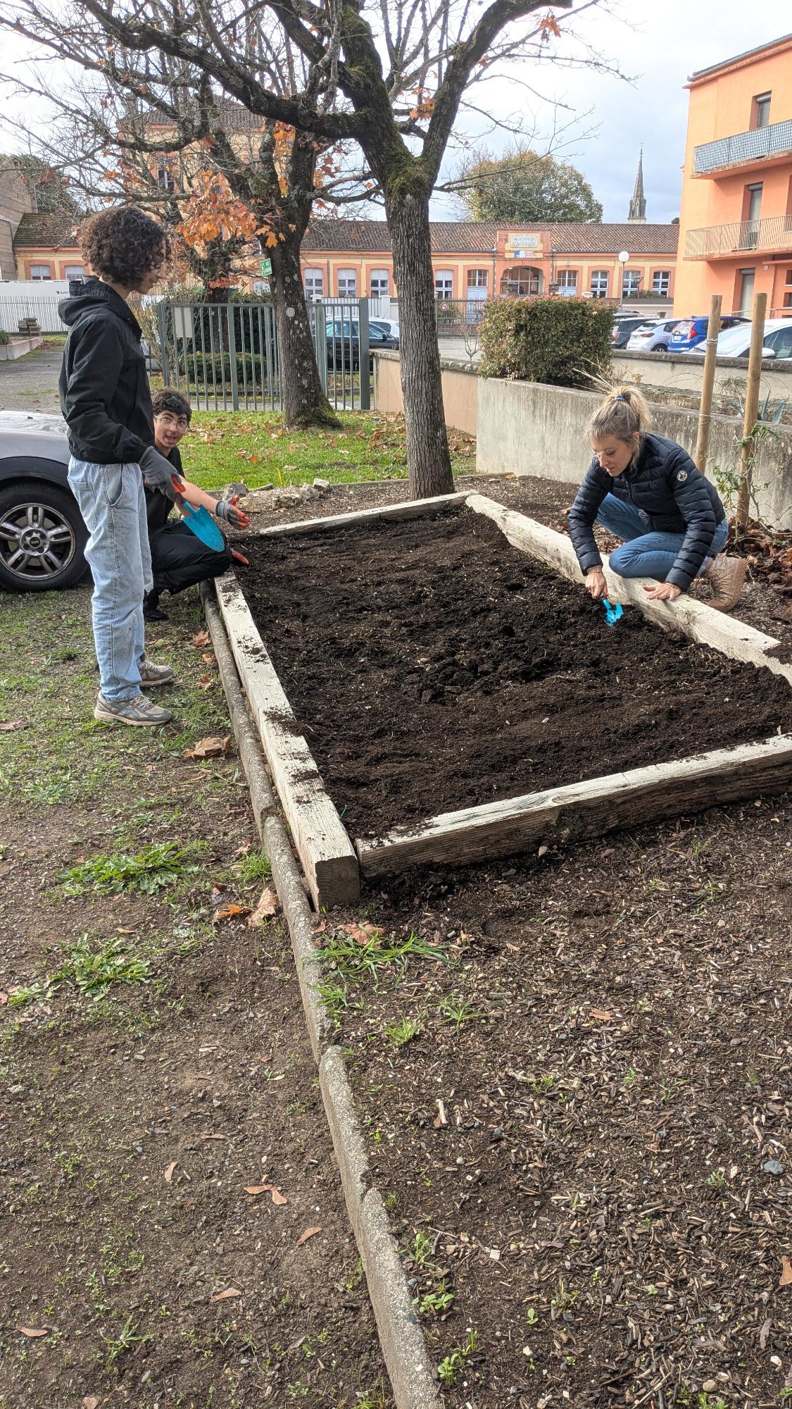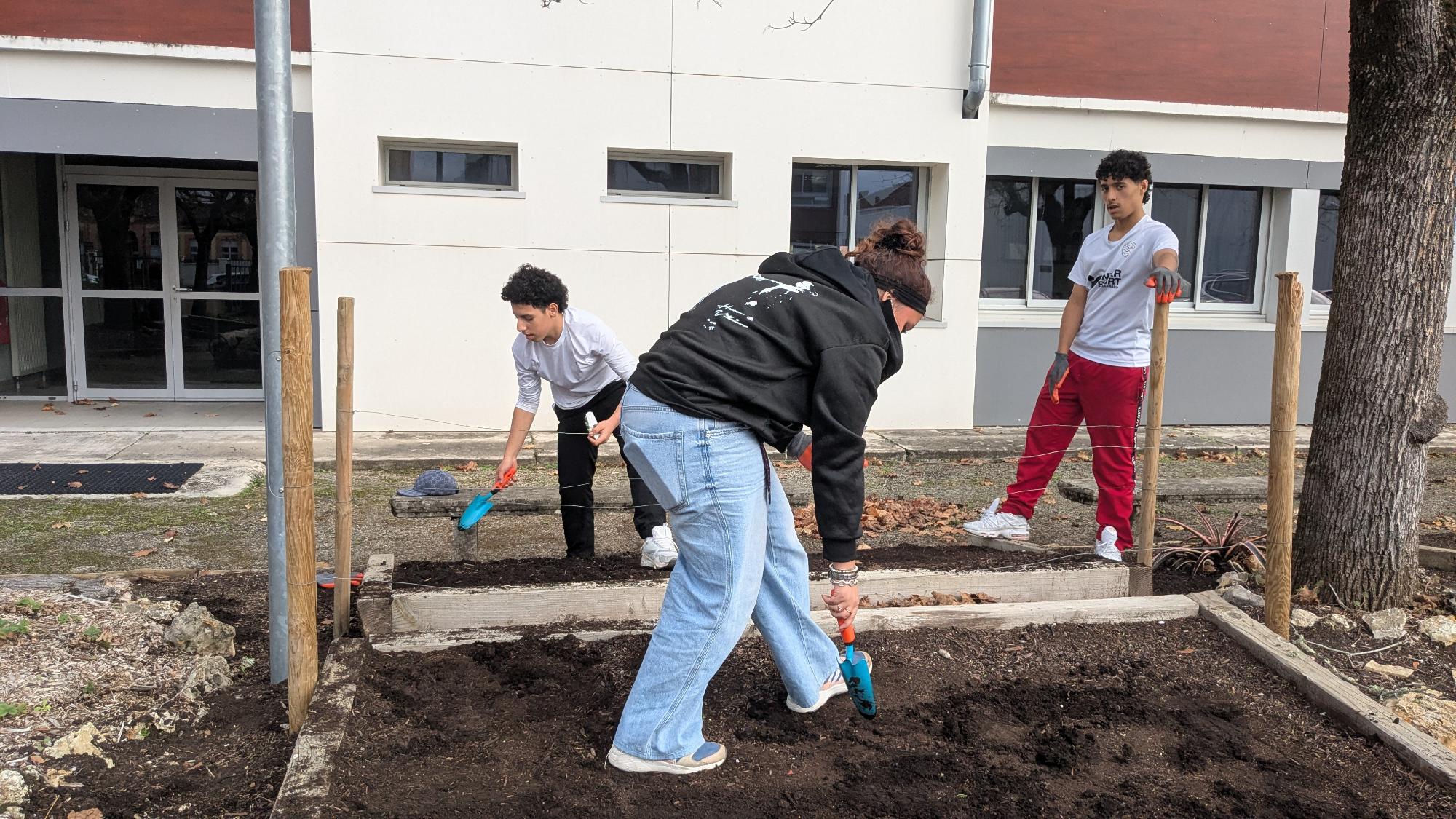 Les élèves du dispositif mini collège travaillent en collaboration avec les lycéens du LEPA de Moissac à l'entretien du jardin crée l'an passé par Mme Pouxviel et ses élèves de 6ème.