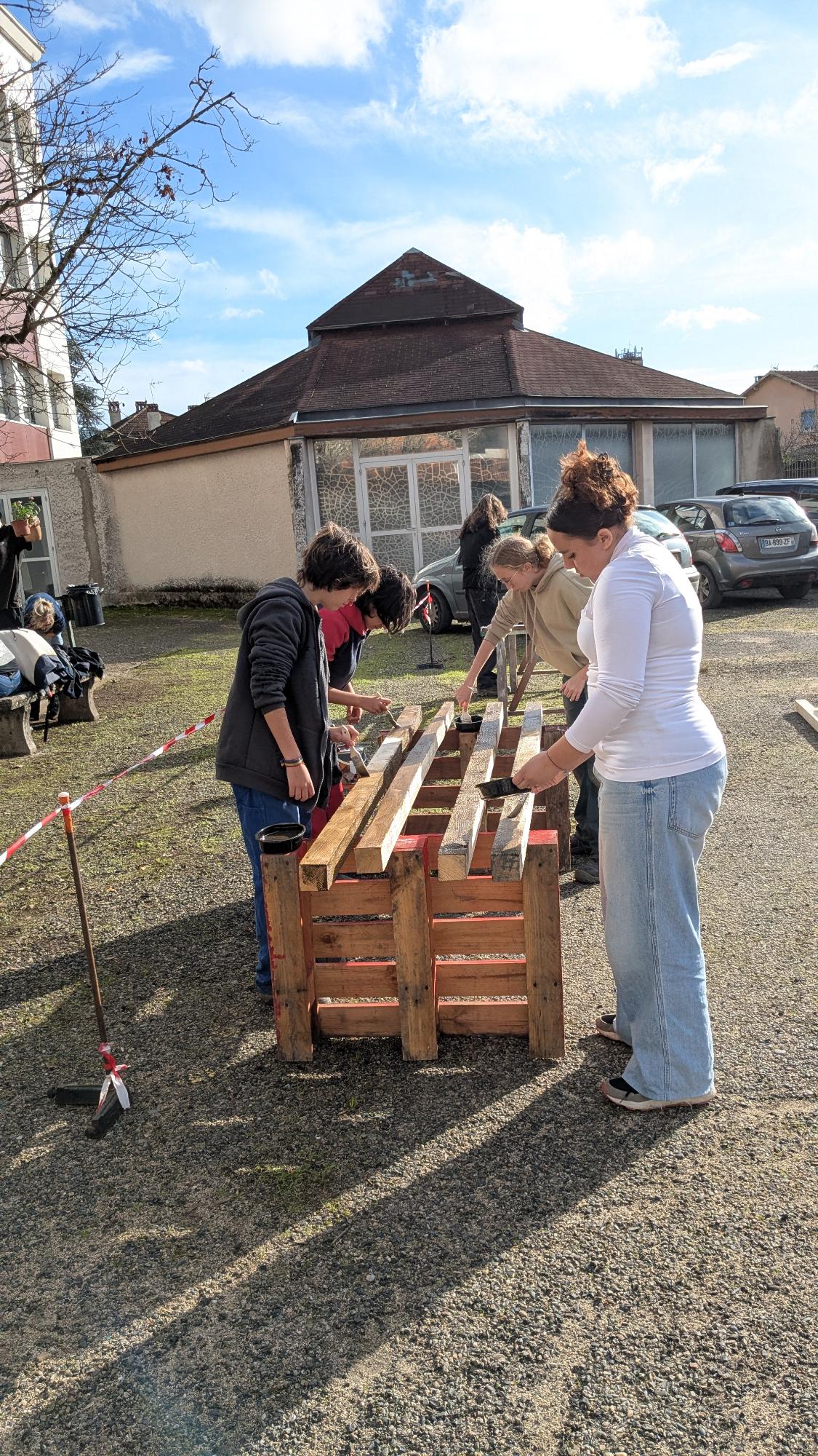 Cette année, Mme Pouxviel et M. Jacotey réalisent avec les élèves, en plus de magnifiques parcelles de plantes et aromatiques, un tunnel végétalisé : de nouvelles compétences pour nos élèves et un superbe parking pour le personnel !