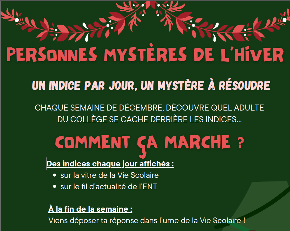 Des indices chaque jour sur la vitre de la Vie Scolaire et sur l’ENT