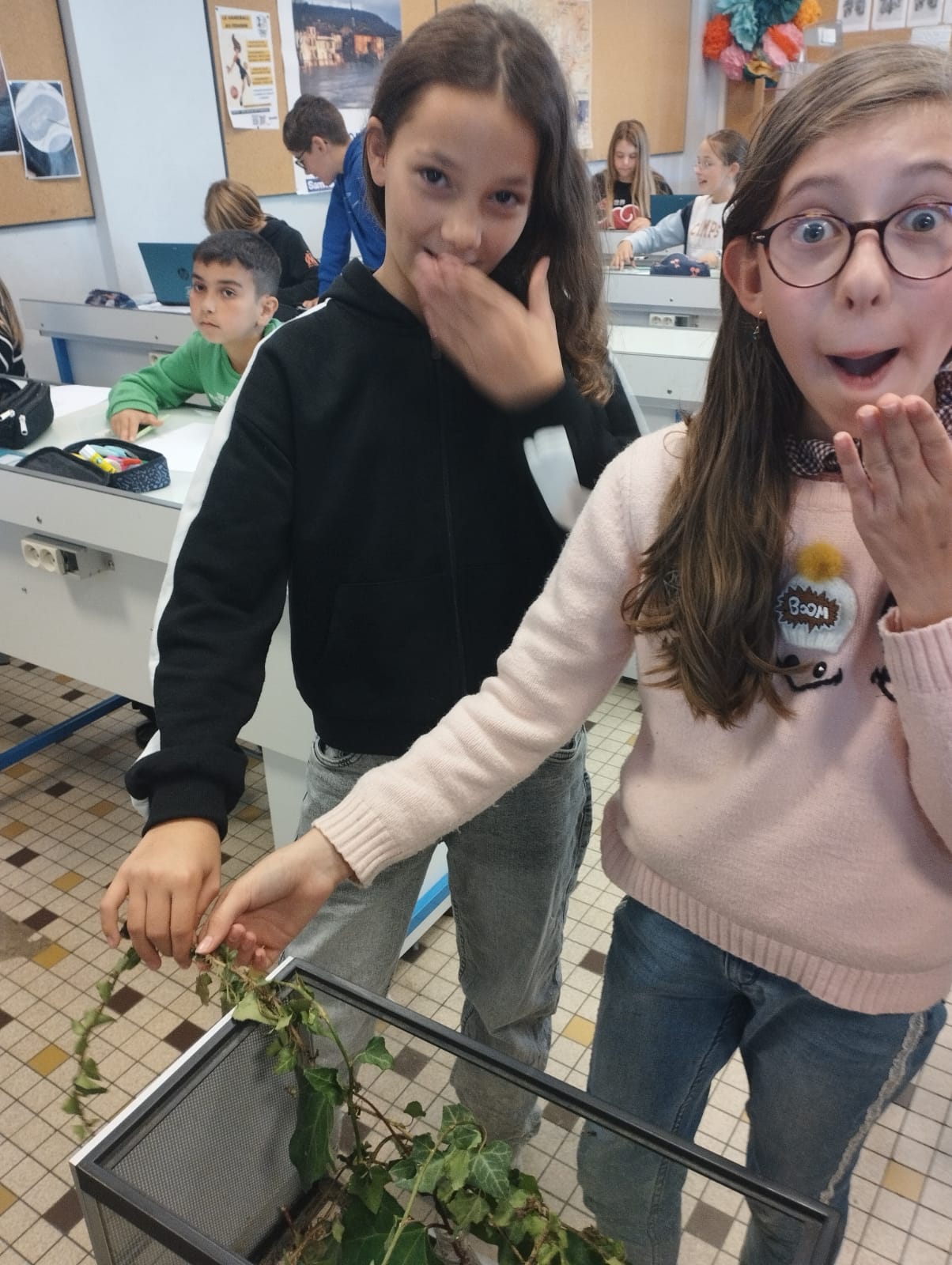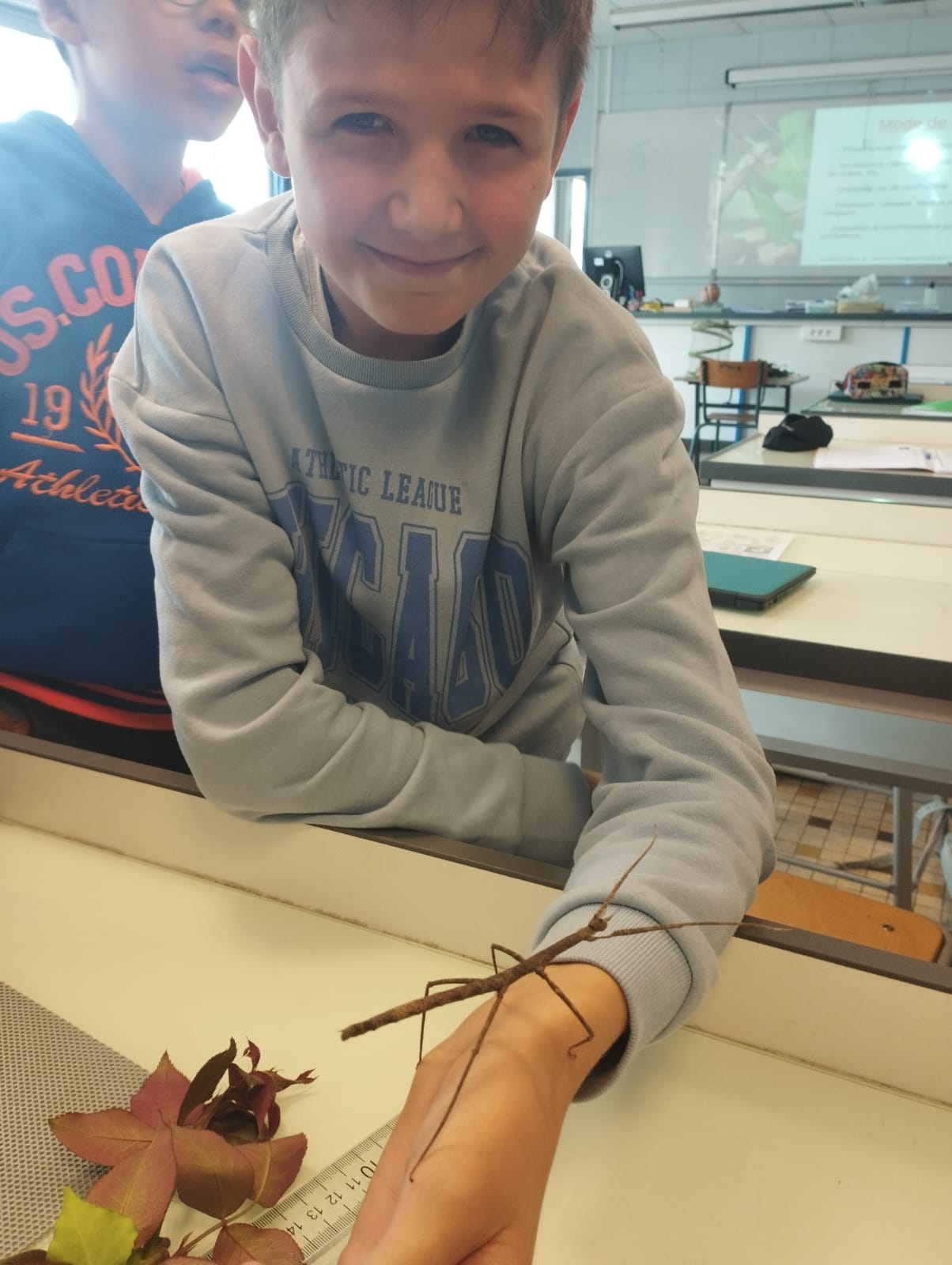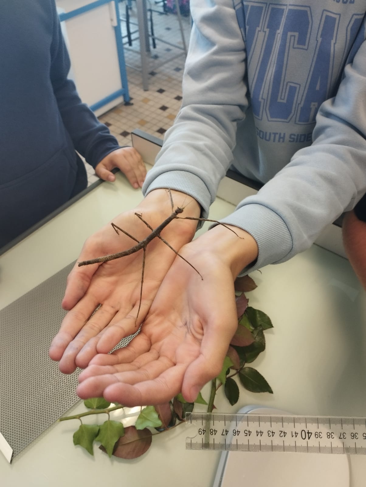 Depuis quelques semaines, les élèves de 6e sont fiers de leur tout nouveau projet : un élevage de phasmes installé dans la salle de SVT avec Mme Pouxviel. Ces drôles d’insectes, qui ressemblent à des brindilles vivantes, fascinent tout le monde !